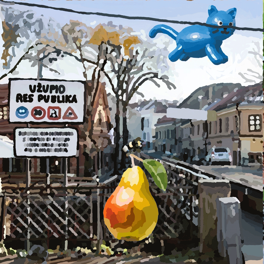 “Užupio Respublika” is a story made of 9 handpainted GIF loops by Max Haarich. Each GIF shows an iconic part of the republic, from the bridge over river Vilnelė to the swing on the Altana hill. All GIFs are connected via synced animations.
